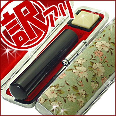 ■印鑑【送料無料】売り切れご免!の訳あり【nxli2cq】セール黒水牛 芯持 印鑑12mmグリーンサクラフラワーケース付き認印・銀行印ギフト【福袋価格】【10P26Oct09】【24H★time012